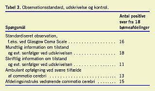 På stort set alle (16 ud af 18) børneafdelinger var observationen standardiseret, f.eks. ved Glasgow Coma Scale.