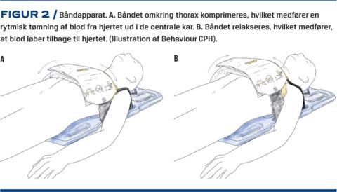 Båndapparatet består af en stor, hård rygplade, der placeres under patienten samt et bredt bånd, der omkranser thorax. Apparatet giver 80 kompressioner pr. minut med en dybde på 20% af den anteriore-posteriore brysthøjde, hvilket afviger fra de nuværende anbefalinger, hvor man anbefaler 100-120 kompressioner pr. minut (Figur 2) [13].