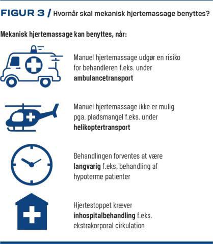 I Danmark forekommer der årligt ca. 5.400 hjertestop [8]. Skønt behandlingsresultaterne for hjertestop uden for hospital er forbedret væsentligt i de seneste år, er der fortsat tale om en yderst livstruende tilstand med en 30-dagesoverlevelse på kun 16% [8].Inden for de seneste 20 år har der været fokus på forbedring af overlevelsen med udvikling og forskning i nye præhospitale behandlingsmuligheder, således at det præhospitale system nu kan overlevere en patient med tilsyneladende behandlingsrefraktært hjertestop til en specialiseret hospitalsafdeling, hvor man kan tilbyde f.eks. ekstrakorporal kardiopulmonal genoplivning. En af disse behandlingsmuligheder er ekstern mekanisk hjertemassage (MekCPR). De intuitive fordele ved MekCPR er, at en maskine ikke udtrættes eller holder pause ved vanskelig transport fra skadested til transportenhed eller under indladning i helikopter eller ambulance. Derudover kan en maskine programmeres til en fast rytme og en fast kompressionsdybde, således at maskinen efter fastspænding på patienten giver en konstant ekstern hjertemassage. Massagen kan således gives præcist efter gældende guidelines, hvilket vil sige en kompressionsdybde på mindst fem centimeter og en frekvens på 100-120 kompressioner i minuttet [9]. En korrekt placering af apparatet på patientens brystkasse er dog en forudsætning for, at MekCPR virker optimalt.