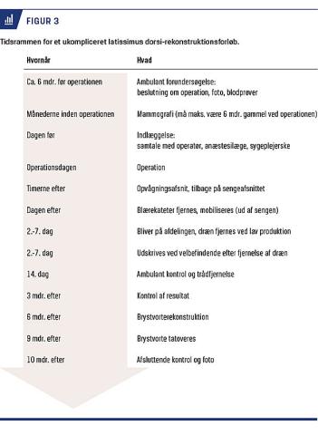 Der vil i ca. halvdelen af tilfældene desuden være behov for korrektion af det kontralaterale bryst for at sikre optimal symmetri. Proceduren kan udføres primært i forbindelse med mastektomi eller mere hyppigt ved et senere indgreb eksempelvis efter afsluttet adjuverende behandling. Derefter opskrives patienten til rekonstruktion af papillen og senere tatovering af denne. Begge disse indgreb udføres i lokal analgesi (Figur 3).