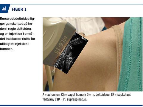 Trods gentagne advarsler i litteraturen foretages vaccinationer stadig i deltoideusområdet, som blottes ved en ofte anvendt procedure, hvor personen trækker tøjet til side fra skulderen ved vaccinationen. Denne adgang indebærer en risiko for utilsigtet injektion i bursa subdeltoidea [1, 2] (Figur 1).