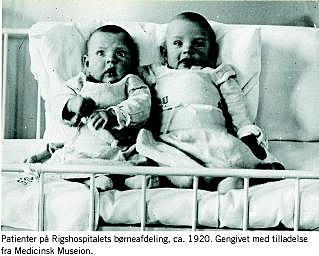 Pædiatri var et område, der havde været lavt prioriteret af det offentlige sundhedsvæsen, men som i starten af 1900-tallet nød stigende opbakning. Siden midten af 1800-tallet havde der eksisteret private børnehospitaler, og der var en udbredt opfattelse af, at omsorgen for denne patientgruppe ikke var en offentlig sag. Imidlertid opnåede det i 1879 oprettede Dronning Louises Børnehospital i København under ledelse af Harald Hirschprung (1830-1916) både international og national anerkendelse som en veldrevet og nyttig institution. Det medvirkede til at fremme pædiatrien i Danmark, og i 1910 blev der med indvielsen af Rigshospitalets børneafdeling for første gang oprettet en pædiatrisk afdeling under det offentlige hospitalsvæsen (Figur 1 ). Afdelingen blev ledet af Carl Edvard Bloch (1872-1952), der i 1916 også blev professor i pædiatri [2].