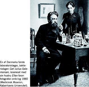 På fotografiet har ægteparret Ellen (1857-1920) og Carl Julius Salomonsen (1847-1924) taget opstilling foran fotografen i deres stiveste puds (Figur 1 ). Han sidder foran sit hjemmelaboratorium. Hun står i baggrunden og virker lidt forlegen over situationen. Begge fanget i et øjebliksbillede, som Carl siden lod indramme og hænge op i de laboratorier, som han kom til at lede.