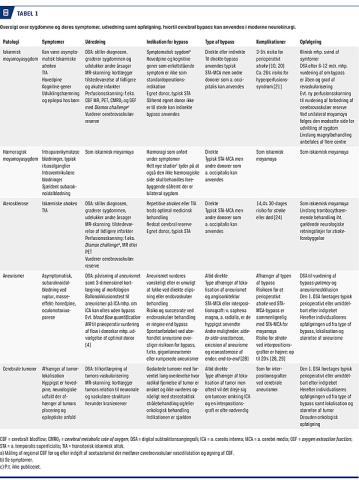 CB anvendes på to måder: til flowsupplement ved cerebral HP (typisk ved MMD og aterosklerose) og til flowerstatning, såfremt et større kar må ofres (typisk ved komplekse cerebrale aneurismer). En oversigt er givet i Tabel 1.