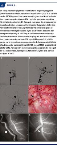 MMD er en kronisk progredierende stenookklusiv sygdom i den terminale ICA og circulus Willisii (Figur 2). Sygdommen er sjælden, med en incidens på knap 1/100.000 i den japanske befolkning [7] og hos kaukasider ca. en tiendedel af dette [8]. Sygdommen ses enten idiopatisk (klassisk moyamoya) eller som led i anden sygdom eller andet syndrom, herunder Downs syndrom og neurofibromatosis type 1 (moyamoyasyndrom).