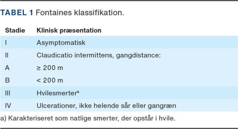 Når det systoliske blodtryk i armen er højere end det systoliske blodtryk i anklen, indikerer det, at arterierne i underekstremiteterne er blokeret pga. ateriosklerose. Graden af underekstremitetsarteriosklerose kan opdeles efter Fontaines klassifikation (Tabel 1).