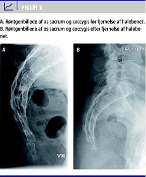Smerter i og omkring os coccygis, coccygodyni, blev først beskrevet af Simpson i 1859, mens fjernelse af halebenet, coccygektomi, blev beskrevet af Pickett i 1758 [1, 2]. Coccygodyni er et smertesyndrom, der består af en trækkende eller lancinerende og persisterende smerte i og omkring os coccygis. Smerten forværres typisk i siddende stilling, ved stillingsskifte, ved defækation, ved samleje og ved anden mekanisk påvirkning af os coccygis udefra og rektalt [3-7]. Kvinder er overrepræsenteret i forhold til mænd i forholdet ca. fem til en [6, 8, 9]. Forskellen på mænd og kvinders bækkenanatomi gør kvinders os coccygis mere prominerende [7, 10]. Det er postuleret, at dette er en medvirkende faktor til den skæve kønsfordeling, fordi coccyx dermed er mere udsat ved traumer hos kvinder. Et andet aspekt af den skæve kønsfordeling er, at nogle kvinder udvikler coccygodyni efter vaginal fødsel.