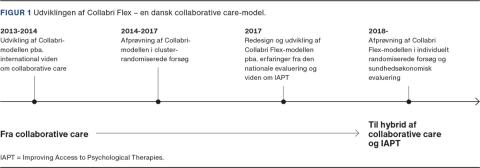 Der er behov for at optimere behandlingen af mennesker med depression og angst i almen praksis, og med udgangspunkt i den internationale litteratur på området vurderes CC at være den bedste model til at opnå dette. Siden 2012 har man udviklet og evalueret en dansk model for CC. Med Collabri Flex-modellen er det således lykkedes at udvikle en dansk CC-model, der er lovende for behandlingen af mennesker med depression og angst i almen praksis i Danmark. Den sundhedsøkonomiske evaluering er imidlertid endnu ikke tilendebragt, og et implementeringsstudie er netop iværksat. De samlede resultater vil afgøre, om der skal arbejdes videre med en national implementering.