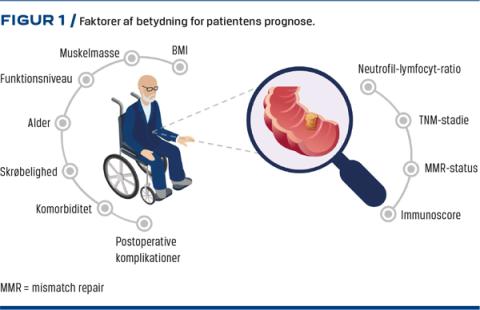 Med de øgede behandlingsmuligheder er det en vigtigere opgave end nogensinde før at kunne identificere højrisikopatienterne, der er planlagt til at få foretaget cancerkirurgi (Figur 1). Hos de multimorbide, ældre og skrøbelige bør man overveje en revideret strategi for, hvor ekstensiv den kirurgiske behandling bør være, og hvorvidt der skal præhabiliteres. Hos de i øvrigt raske yngre patienter, hvor den operative risiko er lav, er der mange faktorer, der kan vejlede den videre behandlingsstrategi og prognose for recidiv. For denne type patienter bør der være overvejelser om en mere ekstensiv kirurgisk strategi i tillæg til onkologiske behandlingsmodaliteter før eller efter kirurgi for at reducere risikoen for tilbagefald.