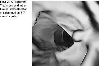 MRK anvendes ikke i betydende omfang og er endnu ikke systematisk undersøgt i Danmark. På flere sygehuse tilbyder man derimod allerede CTK efter inkomplet koloskopi. Der er desuden udført to ph.d.-projekter, hvor CTK er undersøgt med hensyn til udrensning, billedanalyse, årsager til fejldiagnoser, diagnostisk præcision, interobservatørvariation, ekstraintestinale fund og patienttilfredshed [2, 3]. Resultaterne af de mere end 400 CTK'er er under sammenskrivning i en medicinsk teknologivurdering, der tillige vil inkludere en økonomisk analyse. Overordnet er proceduren som præsenteret her, og resultaterne er sammenlignelige med resultaterne i tilsvarende internationale studier, dvs. prospektivt kontrolleret med koloskopi og med blinding af observatører.