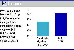 Historisk set har ovariecancerpatienter i Danmark haft den dårligste overlevelse blandt de nordiske lande [3]. DGCD kan dokumentere, at overlevelsen er steget med ca. 8% (Figur 1 ).