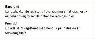 <li>Nickelsen T, Harling H, Kronborg O et al. Dækningsgrad og datakvalitet af DCCG's kliniske database for kolorektal cancer. Ugeskr Læger 2004;166: 3092-5.</li>