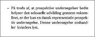 <li>Kjær SK, Dahl C, Bock JE, Christensen RB, Lynge E, Engholm G et al. Seksualvaner hos 20-39-årige kvinder. Ugeskr Læger 1990; 152: 2727-31.</li>