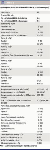 ved første rytmeanalyse). Hjertemassage blev ydet med en frekvens på 130/min (95%-konfidensinterval: 126-134). Dog blev hjertemassage i størstede-