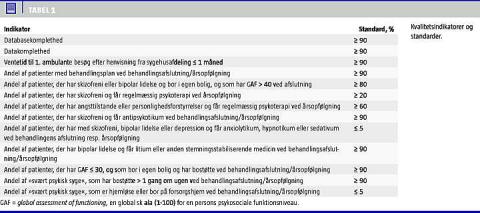 Siden 1990'erne har interessen for kvalitetsudvikling i Sundhedsvæsenet været stigende [1-3]. Den første landsdækkende database i psykiatri kaldet Dipsy startede i Sønderjyllands Amt [4]. Formålet med Dipsy var gennem kvalitetssikringsarbejde med få indikatorer at øge den generelle kvalitet i den ambulante psykiatri.