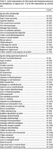 Vi fandt, at mange akutte procedurer ikke beherskes af respondenterne, hvilket bekræftes af andre undersøgelser (5, 8, 10). For eksempel havde 43% af respondenterne aldrig udført defibrillering (Tabel 2). Mange af respondenterne var dårligt rustede til arbejdet som forvagt på skadestuer og akutte modtagelser og kunne ikke almindelige potentielt livreddende procedurer, med hvad dette indebærer af risiko for patientens liv og lægens selvværd.