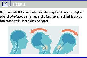 Whiplash eller piskesmæld bruges som betegnelse for den karakteristiske bevægelse af håndleddet ved et slag med en pisk og den noget større og hurtigere bevægelse i enden af pisken. Men ordet whiplash anvendes også om den tilstand, der kan ses, når en person har været udsat for et indirekte traume mod halshvirvelsøjlen. Whiplash synes første gang at være omtalt i 1928, da den amerikanske læge H.E. Crowe (citeret i [1]) beskrev tilfælde, hvor personer blev udsat for en forceret fleksions-ekstensions-bevægelse (Figur 1 ) af hoved og nakke efter trafikuheld med påkørsel bagfra. Allerede i midten af det 19. århundrede havde den danskfødte - og senere engelske - kirurg John Erich Erichsen i kølvandet fra en serie erstatningssager gjort opmærksom på et besynderligt sygdomsbillede, hvor mennesker efter togulykker klagede over nakke- og hovedsmerter, forstyrrelser i arme mv. [2]. Sir Erichsen omtalte dette som »the railway spine« og mente, at togenes store hastighed (ca. 50 km i timen) ikke kunne tolereres af den menneskelige organisme, og at den »høje« hastighed førte til en rystelse af rygmarven, som medførte, hvad han betegnede som et »molecular derangement«, der gav anledning til en sekundær inflammation og i værste tilfælde en alvorlig meningomyelitis med pareser til følge. Denne teori blev på trods af dårlig - eller slet ingen - dokumentation hurtigt taget op af en række advokater i USA og England med store erstatningskrav mod jernbaneselskaber til følge. Senere fulgte andre teorier, hvor funktionelle forklaringer kom i centrum, og den franske neurolog Charcot ved Salpétrièrehospitalet i Paris mente, at disse jernbanetilfælde alene drejede sig om massehysteri [3]. I dag anvendes udtrykket whiplash ofte upræcist, så den traumatiske påvirkning undertiden ligestilles med en automatisk udvikling af svære og til tider invaliderende symptomer. I 1995 da the Quebec Task Force i Canada offentliggjorde en monografi [4] om piskesmæld, blev der skabt en vis orden, men der er fortsat en betydelig begrebsforvirring, hvilket bl.a. afspejler sig i Sundhedsstyrelsens Klassifikation af Sygdomme, hvor diagnosekoden S13.4 både refererer til et nakketraume »distorsion af halshvirvelsøjlen« og det symptomkompleks, der kan ses efter et sådant nakketraume [5].