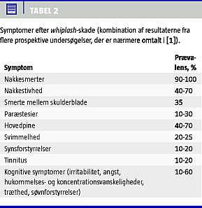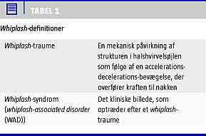 I det følgende skelnes mellem whiplash -traume og whiplash-associated disorder (WAD) (Tabel 1 ).