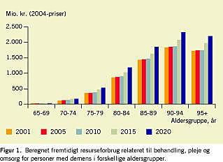 Formålet med denne artikel er at følge op på disse prognoser og illustrere de resursemæssige konsekvenser for social- og sundhedsvæsenet af, at der i fremtiden bliver flere ældre, og at der vil være flere personer med demens. Artiklen skal opfattes som et indlæg i debatten om behandling af demenssygdomme og om prioritering af resurseindsatsen hertil. Der er tale om nogle relativt simple analyser, som er baseret på data fra danske epidemiologiske, kliniske og sundhedsøkonomiske studier. Det er i sagens natur vanskeligt at spå om fremtiden, men det er hensigten her at beskrive nogle tendenser og størrelsesordenen af de udfordringer, som den demografiske udvikling skaber for social- og sundhedsvæsenet.