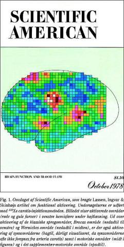 Egentlige målinger af hjernens regionale gennemblødning som mål for hjernens funktionelle aktivering blev introduceret i 1970'erne i nu afdøde professor Niels A. Lassens laboratorium på Bispebjerg Hospital. Undersøgelserne blev udført med den intraarterielle 133 xenon-injektionsmetode. Det første arbejde kom i 1973 (7), og siden kom der en stribe arbejder. En omfattende oversigt blev publiceret i Scientific American i 1978 af Lassen og medarbejdere (Fig. 1) (8). Lassen og medarbejdere kan med rette tilskrives æren som ophavsmænd til hele dette enorme forskningsfelt, som internationalt nærmest er eksploderet op gennem 1990'erne.
