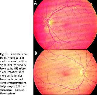 En korrektion af det kromatiske indhold af fundusfotografier for indflydelsen fra alderen er en forudsætning for, at man kan studere okulære og generaliserede sygdommes indvirkning på linsen med denne metode. Præliminære undersøgelser har vist, at alderen på patienter med diabetes mellitus estimeret ud fra det kromatiske indhold i fundusfotografier konsekvent er højere end den faktiske alder [9], hvilket er udtryk for en accentueret aldring af linsen hos denne patientgruppe. Denne accentuerede aldring er sandsynligvis en følge af den diabetiske metabolisme, formentlig særlig det kronisk forhøjede blodsukkerniveau, og meget tyder på, at forskellen mellem den alder, som kan estimeres ud fra fundusfotografiet, og den faktiske alder er et mål for den kumulerede eksposition for glukose gennem hele diabetesvarigheden. Et sådant mål vil potentielt kunne anvendes til at vurdere den totale metaboliske belastning hos en given diabetespatient og dermed risikoen for at få diabetiske senkomplikationer. Dette forhold og indflydelsen af andre systemiske og okulære sygdomme på det kromatiske indhold af fundusfotografier er under udforskning.