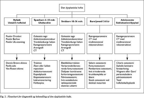 Siden sin introduktion er Ganz' procedure blevet en udbredt og rutinemæssig løsning i mange centre også i Danmark til forebyggelse eller udsættelse af OA hos den yngre, voksne patient med dysplastisk hofteled. En samlet oversigt over behandling af hoftedysplasi fremgår af Fig. 3 .