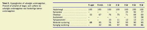 De forebyggende børneundersøgelser er værdsatte af forældrene [3], og deltagelsesprocenten er høj (> 90%) [4]. Siden en stor undersøgelse af småbørnsprofylaksen i årene 1979-1981 [5] har der kun været en sporadisk forskningsindsats på området. De nuværende retningslinjer er i stor udstrækning baseret på traditioner, klinisk erfaring og politiske værdier, og der foreligger kun sparsom forskningsbaseret viden [1].