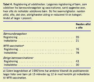 En tredjedel af lægerne registrerede udeblivelser fra børneundersøgelser, og en femtedel foretog genindkaldelser (Tabel 4 ).