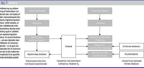Summary The haematological biobank - an infrastructure for quality assurance, development and research Ugeskr Læger 2011;173(21):1489-1493 Archived patient samples of biological material coupled to clinical databases are valuable and hold the potential to improve patient care, quality control, research and development. Biobanks form a catalytic infrastructure which ensures the registration, handling and storage of collected biological material. Here, we describe the Haematology Biobank and stress the significance of a registration database. Together, these form the basis for retrospective validation of clinical progress and prognostic evaluation of new diagnostic methods, which can therefore be more quickly implemen-ted in the clinic.