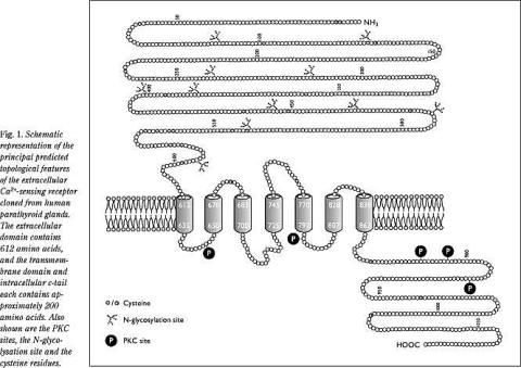 <li>Brown EM, Gamba G, Riccardi D et al. Cloning and characterization of an extracellular Ca(2+)-sensing receptor from bovine parathyroid. Nature 1993;366:575-80.</li>