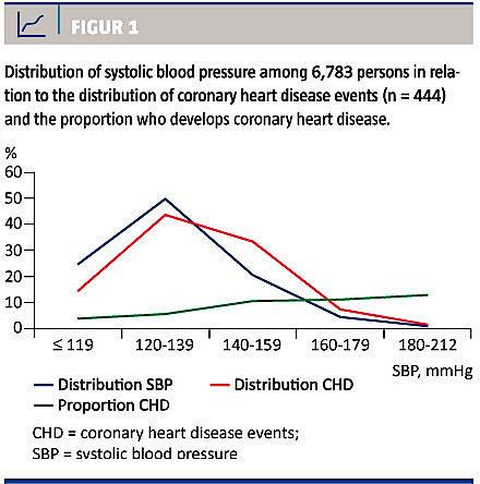 Både hvad angår systolisk blodtryk (> 140 mmHg) og CRS (> 10%) ses langt de fleste tilfælde af CHD i gruppen med lav eller ingen risiko, henholdsvis < 10% ved anden- og trejdegradshypertension og 25% ved en CRS over 10%. Hvad angår LDL-kolesterol, ses næsten 80% af CHD-tilfælde i gruppen, som har værdier over det rekommanderede niveau på 3 mmHg. Da dette ses hos to tredjedele af befolkningen, vil det imidlertid ikke være en relevant grænse for en højrisikostrategi. Deltagelsesprocenten i undersøgelsen var 52, og dette understreger yderligere betydningen af at benytte den strukturelle strategi, eftersom det er velkendt, at personer med højere risiko sjældnere kommer, og at en højrisikostrategi i modsætning til en strukturel strategi kræver folks tilstedeværelse.