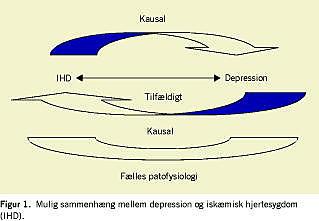 For 70 år siden blev der første gang rapporteret om, at svært depressive patienter havde en nifold øget dødelighed af IHD i forhold til baggrundsbefolkningen. I nyere studier har man dog fundet, at dødelighed af IHD hos depressive »kun« er fordoblet i forhold til hos baggrundsbefolkningen [1]. I studier, hvor almenbefolkningen er undersøgt for depressive symptomer og efterfølgende fulgt for udvikling af IHD, har man fundet, at udviklingen af IHD blandt dem, som har depressive symptomer over en given afskæringsværdi, er dobbelt så stor som blandt dem, som scorede under afskæringsværdien [2], og det er beskrevet, at hyppigheden af efterfølgende IHD er korreleret til sværhedsgraden af depressive symptomer ved indgangen i studiet [2].