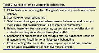 Summary Depression and neurological disorders: Ugeskr Læger 2007;169(16):1467-1469 Depression frequently accompanies neurological disorders. Depressive symptoms have specific characteristics depending on the type of cerebral lesion, comorbidity and psychosocial impact. Difficulties in distinguishing mental symptoms from those caused by neurological damage partly explain the fact that depression is still under-diagnosed. Depression has a major negative impact on the quality of life and increases patients´ dependency on relatives. Evidence-based guidelines for treatment are very sparse and there is an urgent need for large-scale controlled trials.