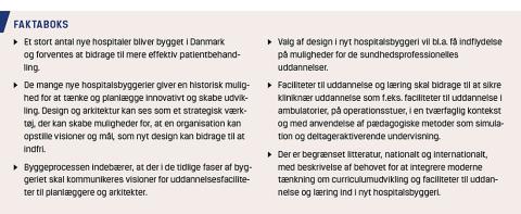 Ved design af nye hospitaler skal der tænkes på rammer, der faciliterer muligheder for den kliniske uddannelse.