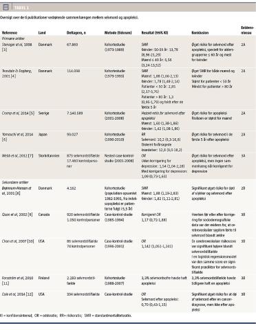 Chan et al [10] udarbejdede i 2007 et case-kontrol-studie med det formål at undersøge en eventuel association mellem selvmord og cerebrovaskulære