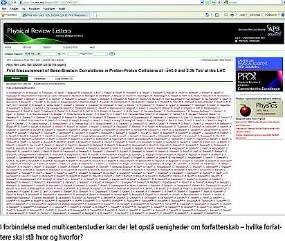 Selvom multicenterstudier bliver mere og mere almindelige, er der en fare for, at potentielle konflikter om forfatterskab kan svække incitamentet til at engagere sig i denne type studie. Divergerende tidsskriftskrav og usikkerheder om databaseindeksering må erstattes af klare anvisninger, således at både anerkendelse og ansvar bliver let at placere.