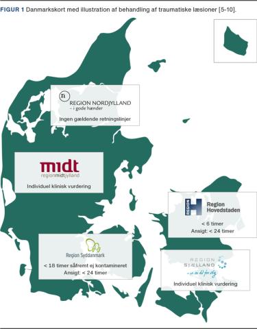 En gennemgang af guidelines for behandling af traumatiske sår, der defineres som læsioner i hud og subcutis, afslører, at behandlingen ikke er ens i de fem danske regioner samt i Lægehåndbogen.