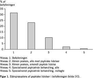 Figur 1 er udformet på baggrund af informationer om gennemsnitlig forekomst af psykiatriske symptomer og sygdomme for forskellige niveauer i behandlingshierarkiet i en vestlig befolkning som den danske. Figuren er udarbejdet på grundlag af information i [4].