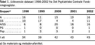 Der findes dog ganske enkelte undtagelser. Hvis en sygdomsgruppe eller lignende er meget klart defineret, og alle forekommende tilfælde kan identificeres, kan man tillade sig at gennemføre registerforskning med intet eller begrænset klinisk islæt. Selvmord er en sådan hændelse. Alle kendte selvmord registreres i Sundhedsstyrelsens Dødsårsagsregister (tillige med de tilfælde, hvor der er tvivl om, hvorvidt døden skyldes selvmord eller eksempelvis ulykke). Det væsentlige er, at alle tilfælde er registreret. Med dette udgangspunkt kan man ad registervej søge efter prædiktorer for selvmord. Således har Mortensen et al [13] og Qin et al [14] bidraget med væsentlig viden om psykisk sygdom og kønsforskelle som risikofaktorer for selvmord i Danmark, selv om man også i denne situation skal være opmærksom på, at psychiatric illness kun omfatter de personer, der har overskredet den nosokomielle tærskel og er blevet registreret i DPCF. De otte projekter ud af de ti oplistet i Figur 2 er karakteriseret ved undersøgelse enten ved spørgeskema eller ved interview af populationsbaserede kohorter. De er senere efterundersøgt for registrering i DPCF. Disse undersøgelser er begrænsede af, at kun de (formodet svære) tilfælde af psykisk sygdom, nemlig de, der har overskredet den nosokomielle tærskel og dermed er blevet registreret i DPCF, kommer til undersøgernes kundskab. Derfor bør sådanne undersøgelser suppleres med kliniske efterundersøgelser. I Projektet 2000-2 anvendte man retrospektive data fra DPCF til at afgøre, om mødrene til en fødselskohorte havde været behandlet i det psykiatriske sygehusvæsen. Endelig benyttede man sig i den sidste undersøgelse (2001-1) udelukkende af registre. Argumentation for, at dette er videnskabeligt tilladeligt (i en befolkningsundersøgelsessammenhæng), er, at den forklarende variabel, MFR-vaccinationen, er registreret landsdækkende for hele populationen som diskuteret ovenfor.