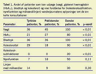 Af de tyrkiske patienter vidste 21%, hvor på vandrejournalen deres glykæmiske behandling stod anført. De tilsvarende tal for pakistanske og danske patienter var hhv. 45% og 80% (p< 0,05).