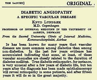 <li>Lundbæk K. Diabetic angiopathy - a specific vascular disease. Lancet 1954;I:377-9.</li>