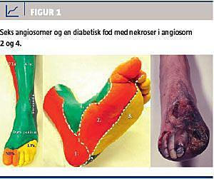 Sandsynligheden for, at diabetiske fodsår fører til amputation, er ca. 17%. Patienter med diabetiske fodsår er ofte uegnede til bypasskirurgi, fordi de har svigt af andre organer og ofte har uegnede eller manglende vener til bypass, desuden er underbensarterierne ofte uegnede til anastomose, hvorfor interventionsbehandling tit vil være det eneste tilbud. Ballondilatation (PTA) og evt. stentanlæggelse under knæniveau har været anvendt igennem mange år, men først i de senere år er der udviklet materialer, der er dedikeret til denne behandlingstype. Det primære mål er at revaskularisere angiosomet, hvor såret er lokaliseret (Figur 1), idet det er påvist, at direkte revaskularisering giver signifikant bedre sårheling og ekstremitetsbevarelse end indirekte revaskularisering [2].