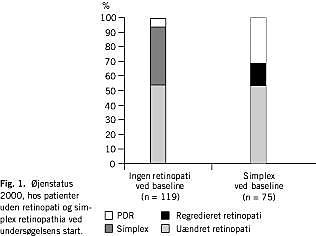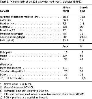 Materiale og metoder: Øjenstatus og andre diabetesrelaterede kliniske parametre hos 223 type 1-diabetikere, der indgik i et kvalitetssikringsstudie i 1993, er blevet fulgt til 2000.