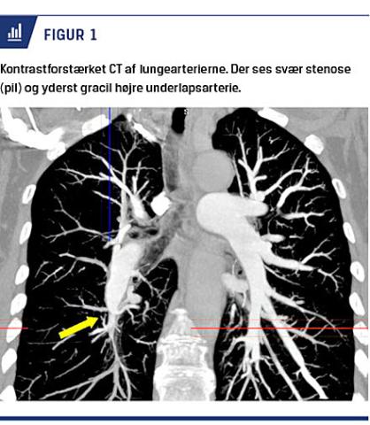 af pulmonal hypertension. Sygdommen kan udvikles efter akut lungeemboli, men kun 60-80% af patienter med CTEPH har en anamnese med tidligere akut lungeemboli eller dyb venetrombose [1]. CTEPH skal haves in mente hos patienter med dyspnø og funktionsnedsættelse efter tidligere akut lungeemboli og bør generelt overvejes hos alle med dyspnø og pulmonal hypertension. Kirurgisk behandling i form af pulmonal trombendarterektomi (PEA) er den eneste potentielt kurative behandling af CTEPH.I Danmark opereres patienter med CTEPH på Aarhus Universitetshospital.