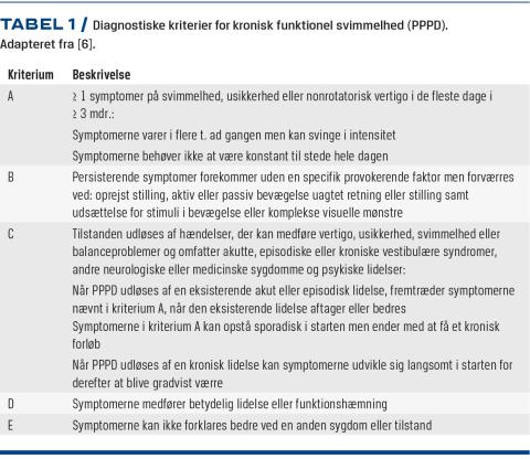 www.jvr-web.org/ICVD.html (5. feb 2019).Trinidade A, Goebel JA. Persistent postural-perceptual dizziness – a systematic review of the literature for the balance specialist. Otol Neurotol 2018;39:1291-303.