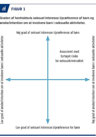 Seksuel interesse for børn ytrer sig forskelligt med varierende grader af eksklusivitet og intention om/behov for at udleve trangen; en person kan have seksuelle tanker om børn og anvende UBB uden at have ønske om at realisere denne interesse i praksis [4]. Eksklusiv interesse kombineret med ønsket om at udleve interessen er forbundet med høj risiko for at begå overgreb (Figur 1).