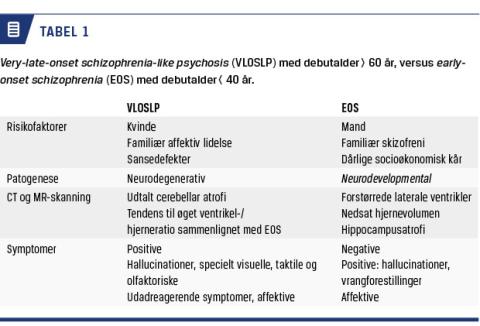 Forskelle og ligheder mellem early-onset-skizofreni og VLOSLP er vist i Tabel 1.