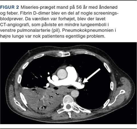 I teorien er alting som regel enkelt, men i virkeligheden er akutte patienter ofte ældre, lungesyge, febrile, gravide, kræftsyge, har været udsat for et traume eller er nyligt opererede. I den kontekst præsterer D-dimer markant anderledes. Denne statusartikel vil derfor fokusere på den diagnostiske præcision af en forhøjet D-dimer.