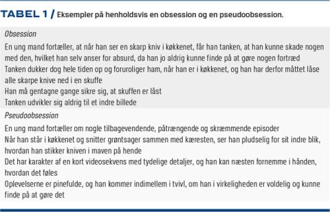 Formålet med denne artikel er at gennemgå den klassiske sondring mellem »ægte« obsessioner/»ægte« kompulsioner og »pseudo«-obsessioner/»pseudo«-kompulsioner. De sidstnævnte er fænomener, der er karakteriseret af nedsat indsigt og modstand og er tættere relateret til psykotiske lidelser. Forekomsten af dem bør foranledige en bredere differentialdiagnostisk vurdering. Denne problemstilling er aktualiseret af, at man i den nu vedtagne version af ICD-11 [9, 10] tillader obsessioner med såvel god som dårlig eller fraværende indsigt.