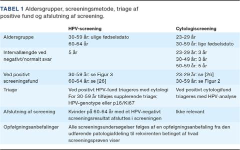 Cytologi anvendes fortsat ved screening af kvinder i alderen 23-29 år, mens HPV-test fortsat anvendes som screeningstest hos kvinder i alderen 60-64 år.
